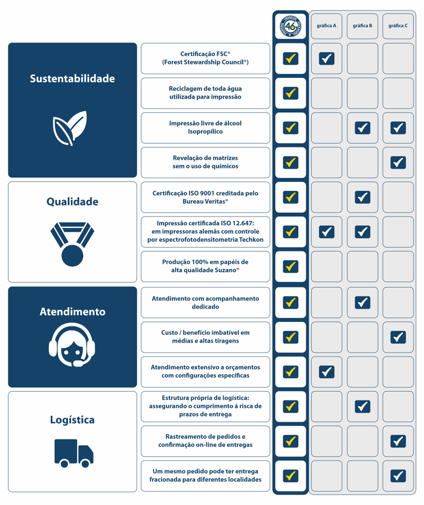 Todos nossos produtos podem levar o selo FSC, que atesta a origem do papel por manejo florestal responsável